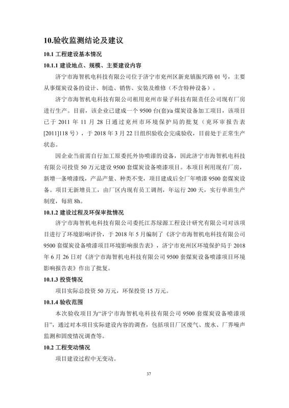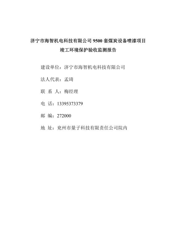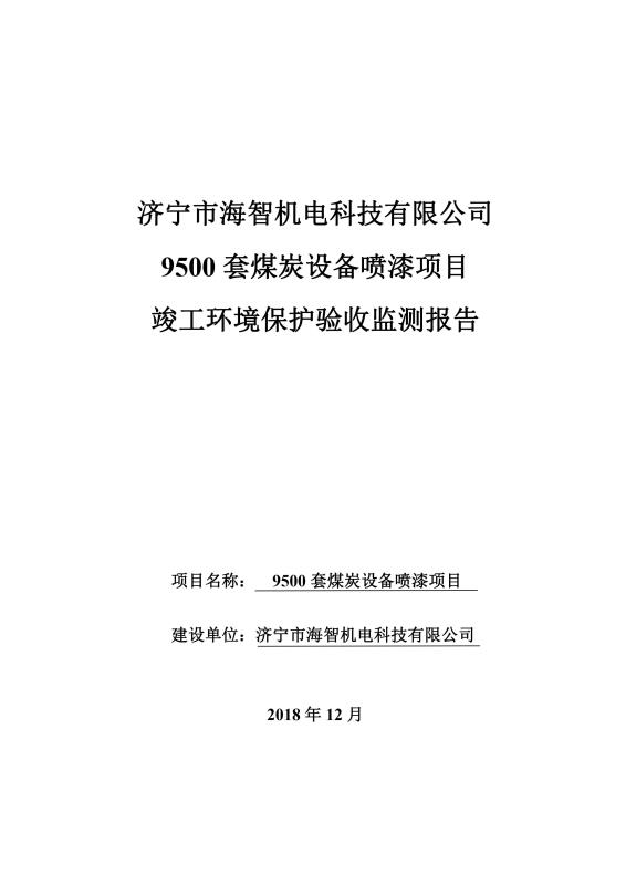 > 9500套煤炭設備噴漆項目竣工環(huán)境保護驗收監(jiān)測報告