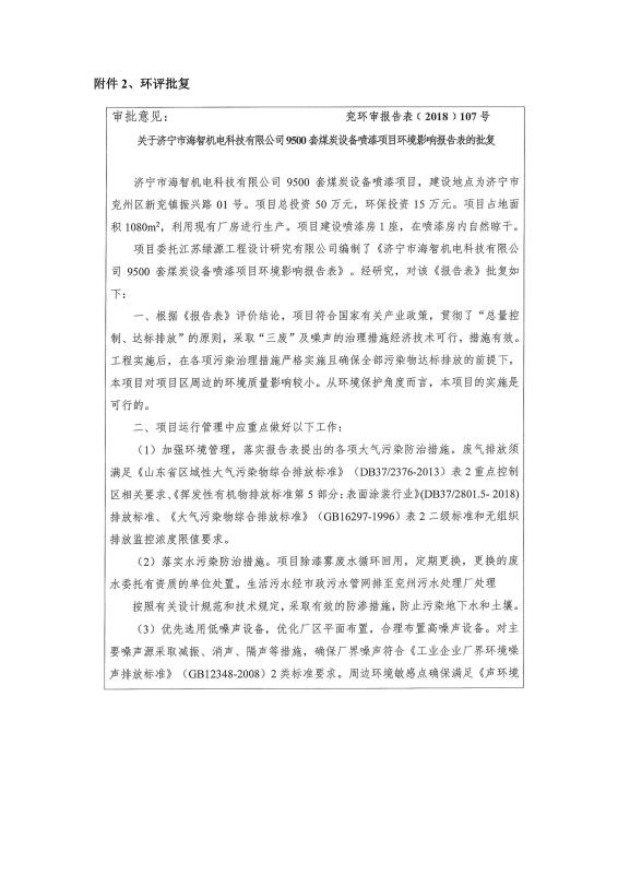 9500套煤炭設備噴漆項目竣工環(huán)境保護驗收監(jiān)測報告