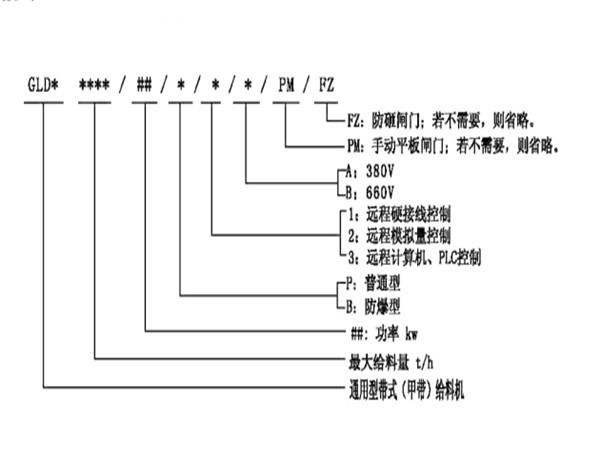 變頻調(diào)速給料機型號說明: