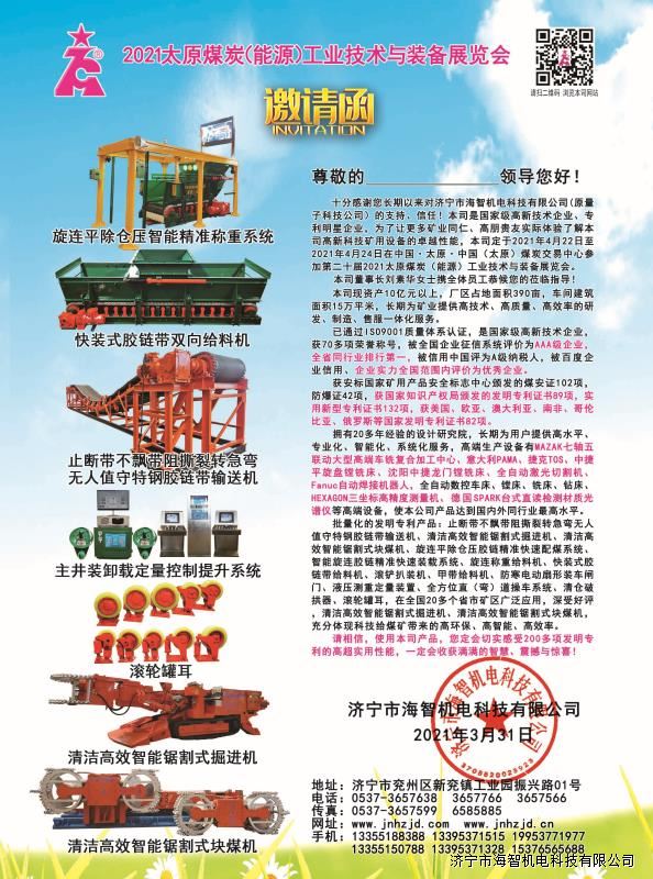 > 邀請函:第二十屆2021太原煤炭(能源)工業(yè)技術(shù)與裝備展覽會(huì)